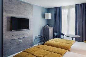Le 80 camere uniscono comfort e carattere. La decorazione si declina in una palette delicata, arricchita da richiami grafici o floreali ispirati allo stile École de Nancy. Moquette spesse, testiere elaborate, lampade dal design curato rafforzano l’impressione di un ambiente accogliente. Troverete letti di qualità, un buon livello di insonorizzazione, uno spazio di lavoro piacevole e una connessione Wi-Fi veloce, utile sia per viaggiatori d’affari che per soggiorni di piacere.